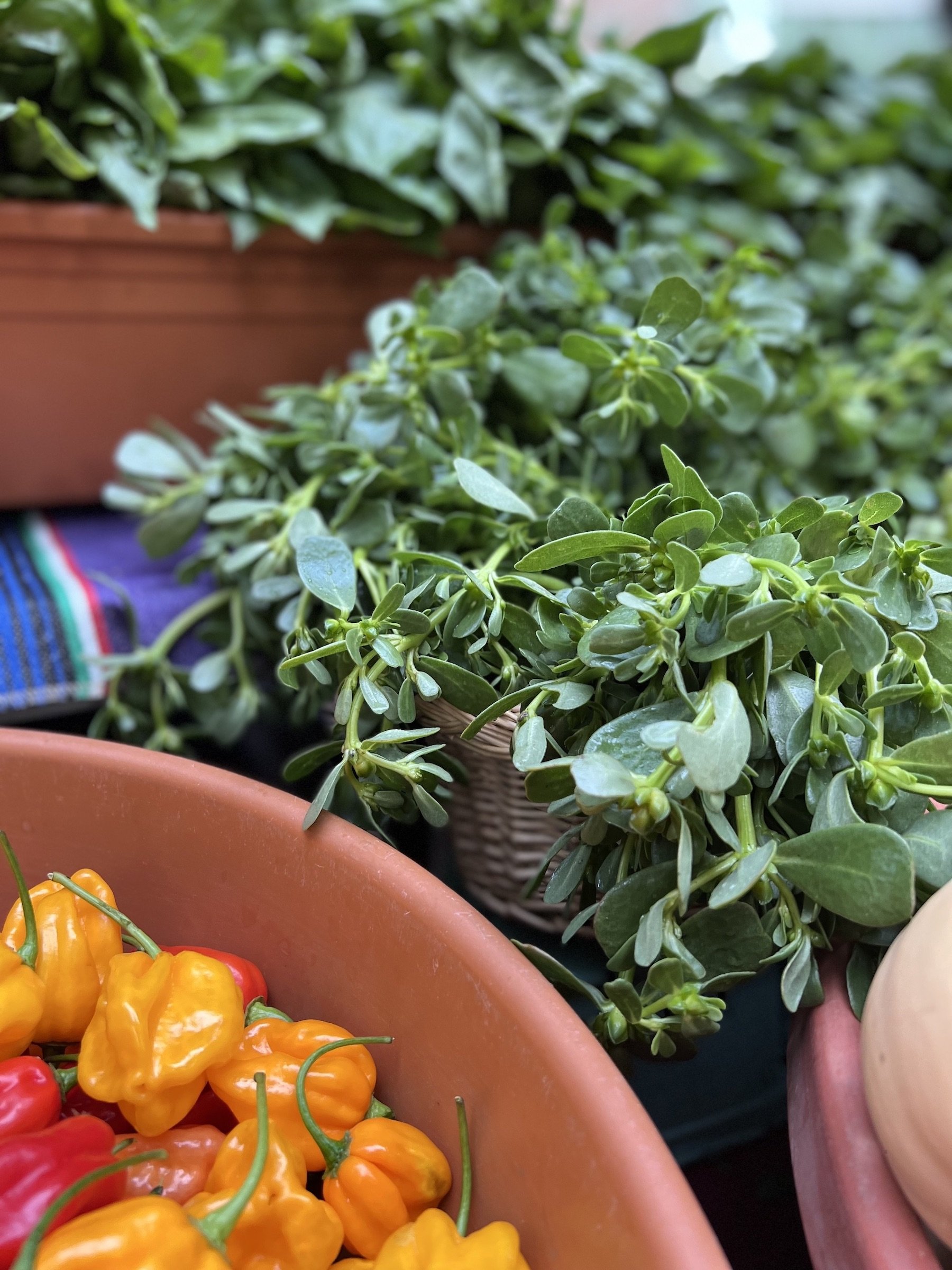 Farm owner Virginia Herrera got a whole set of new market fabrics from her hometown in Mexico this year. They have been an absolutely gorgeous backdrop to display her beautiful produce. When she handed me the cloths for the first time, she said, “When people come to my booth, I want them to know where I’m from.”