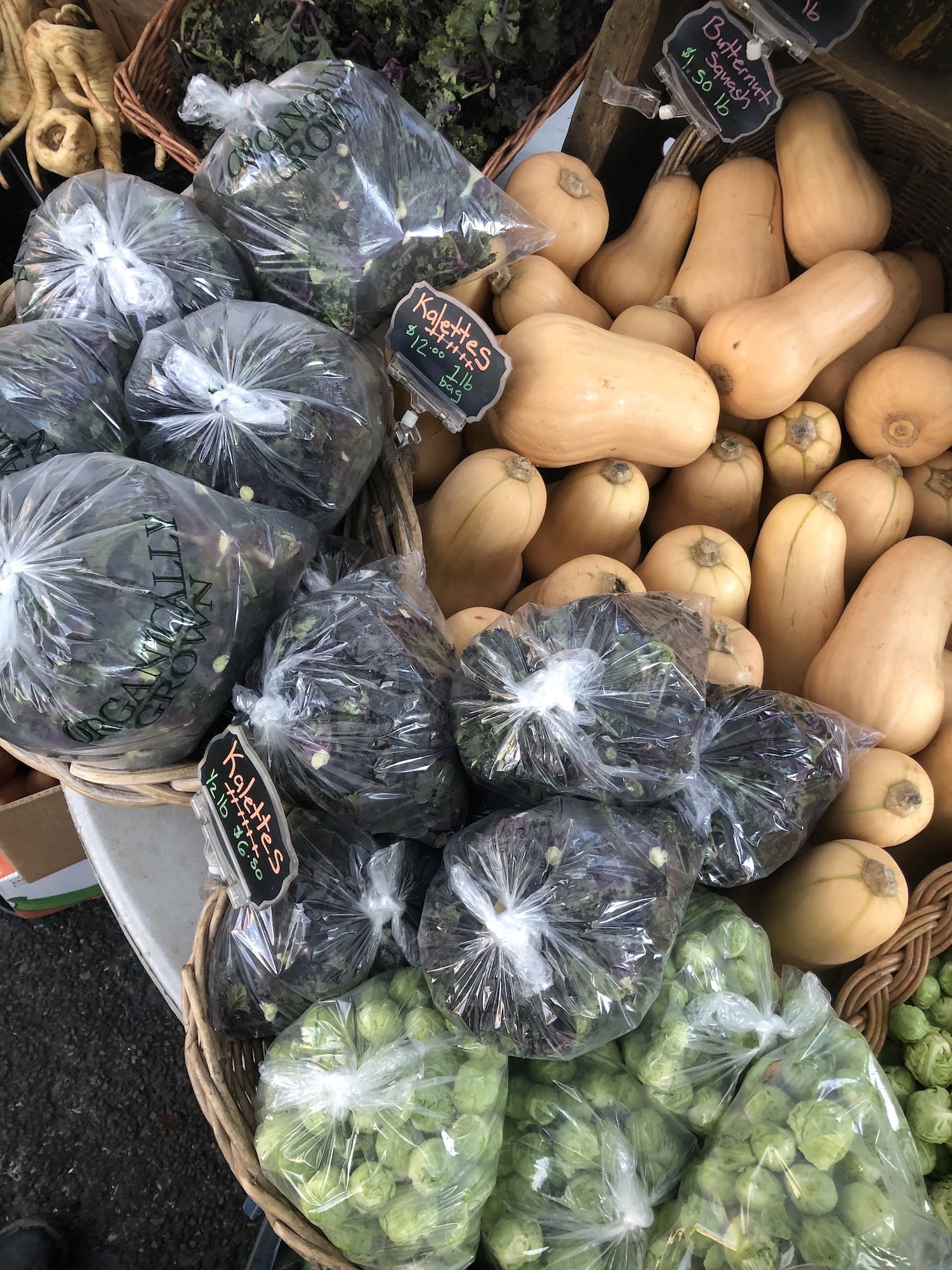 A beautiful winter day at the farmers market, pandemic “no contact” style, with a line down the block